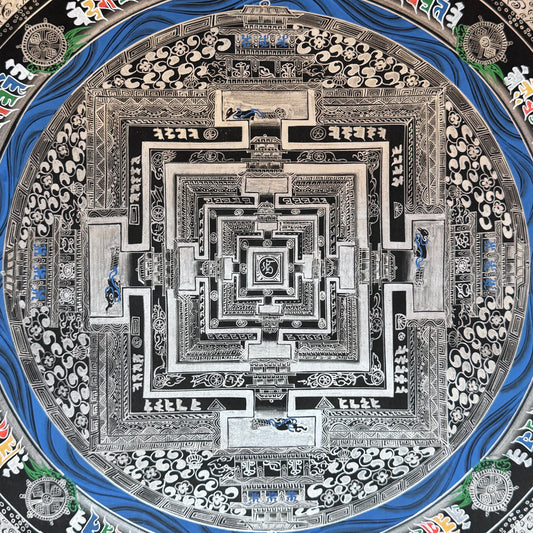 Silver Kalachakra Mandala Thangka Painting