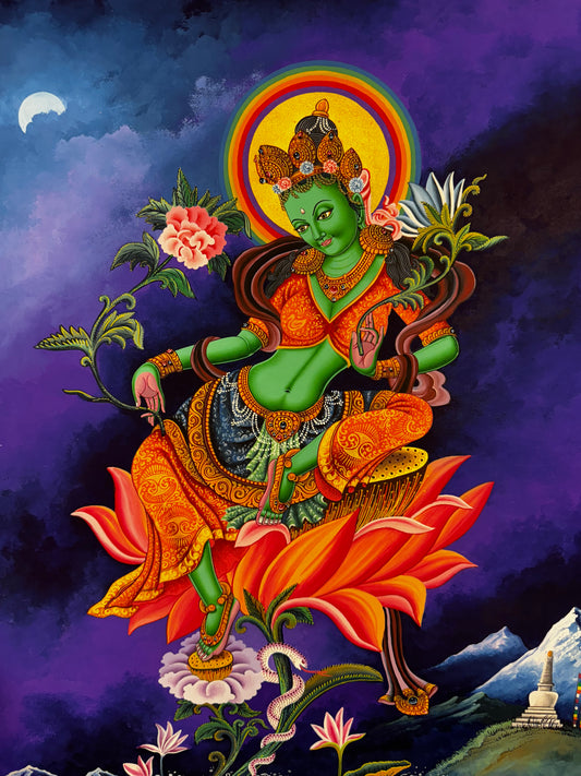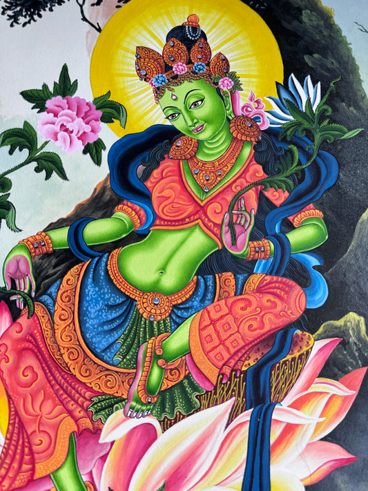 Masterpiece Newari Green Tara Thangka Painting