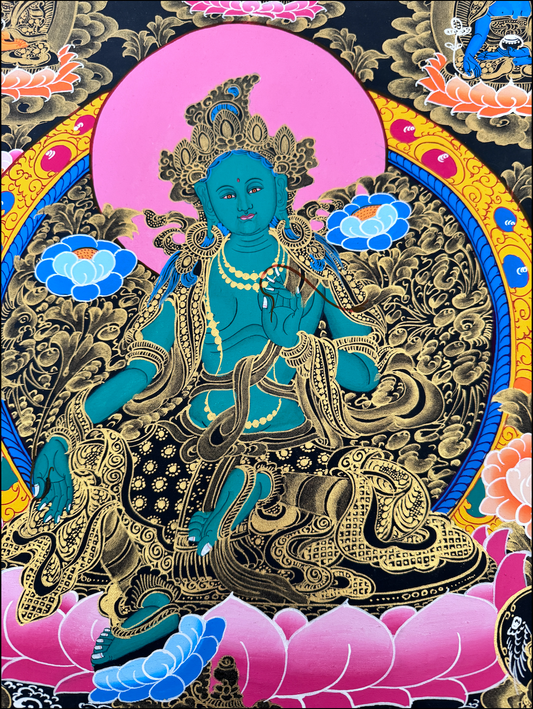 Thangkas, cherished in both Tibetan and Nepalese Buddhist traditions, capture the essence of spirituality through their intricate depictions of deities and mandalas. These vibrant fabric paintings are not just art but are used as tools for meditation and spiritual practice. They stand as beautiful representations of the rich cultural and spiritual heritage of the Himalayan region.